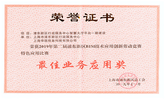 2019年11月26日下午,“改革開放再出發(fā) 創(chuàng)新發(fā)展勇突破”——第二屆浦東新區(qū)BIM技術(shù)勞動競賽頒獎儀式暨應(yīng)用創(chuàng)新論壇在德勤園A幢一樓多功能廳隆重舉行。本次大賽經(jīng)過經(jīng)過兩個月網(wǎng)上評審、初賽復(fù)賽等選拔后,我司參賽項目從眾多優(yōu)秀項目中脫穎而出,榮獲2019年度第二屆浦東新區(qū)BIM技術(shù)應(yīng)用創(chuàng)新勞動競賽特色應(yīng)用比賽一等獎暨最佳業(yè)務(wù)應(yīng)用獎。
